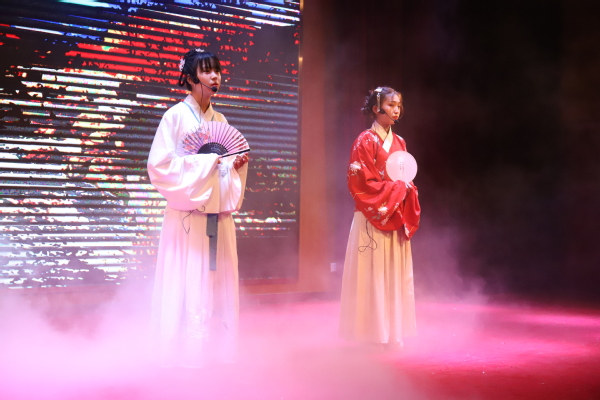 “鸟欲高飞先振翅,人求上进先读书”,330余名师生以朗读会的形式,共同迎接第24个世界读书日。朗读会以梁衡的《冬日香山》拉开序幕,在烟气氤氲中,两位朗读者身着汉服,手持团扇,伴随着高山流水的音乐,娓娓道来。紧接着,史铁生的《奶奶的星星》、顾城的《我是一个任性的孩子》等现当代国内外名家的经典选段在舞台上一一呈现,体裁涉及小说、散文、诗歌、议论文等,通过丰富多元的表达,朗读者将现场观众带入一个又一个或平凡、或浪漫的书中世界。