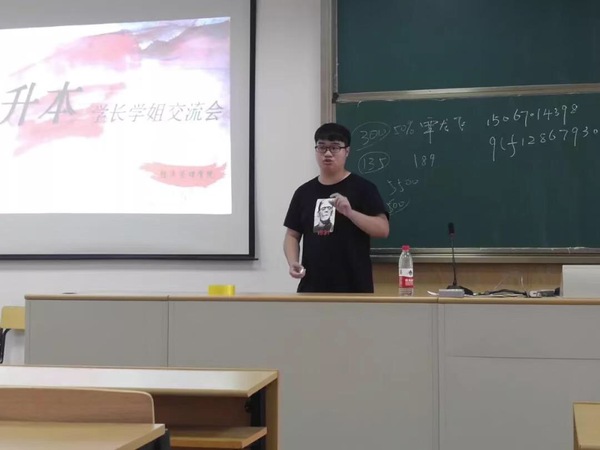 交流会伊始,何昊老师介绍了2019届毕业生专升本的整体情况,肯定了2019届同学在专升本方面取得的良好成绩,提出了对2020届报名专升本同学的期望:端正态度,提前准备,尽早规划。