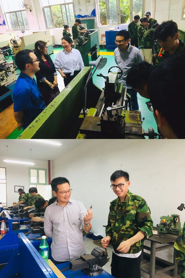 6月18日下午,机电工程学院党总支书记巫少龙,副院长张玉贤一行前往衢州中等专业学校看望实习中的同学们,衢州中等专业学校副校长蔡文兰,机电工程学部姚新科陪同。