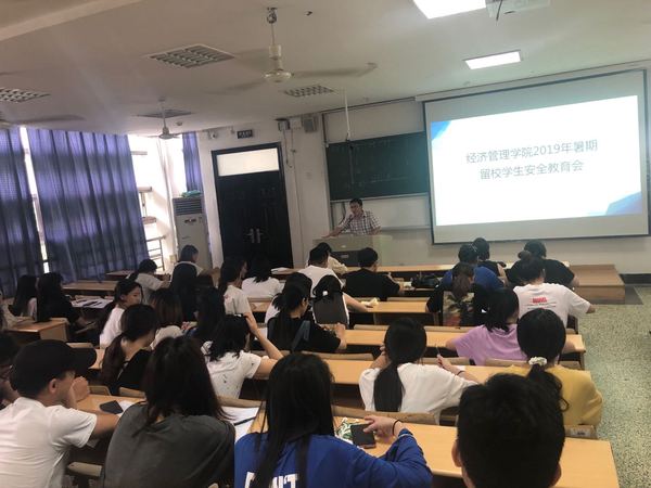 为进一步落实暑假留校学生的安全稳定工作,确保留校学生度过一个安全愉快的假期。7月3日中午,经济管理学院在阶西2-1召开暑期留校学生安全教育会。出席本次会议的有经济管理学院党总支副书记覃龙飞、学工办辅导员、各项目负责老师、班主任、所有暑期留校学生。