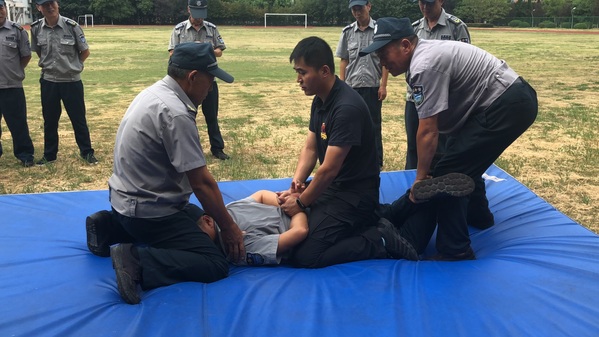 为确保练兵成效,后勤保卫处邀请了衢州市特警支队赵朔警官给全体保安员授课。赵警官从盾牌钢叉围攻术到制服歹徒,从保安员自我防范能力到行为举止规范进行了详细的讲解,动作要领到位,分解步骤详实,保安员说,虽然是短短两天的岗位练兵,但是收获很大,培训得再苦再累也值得。(后勤保卫处 黄刚)