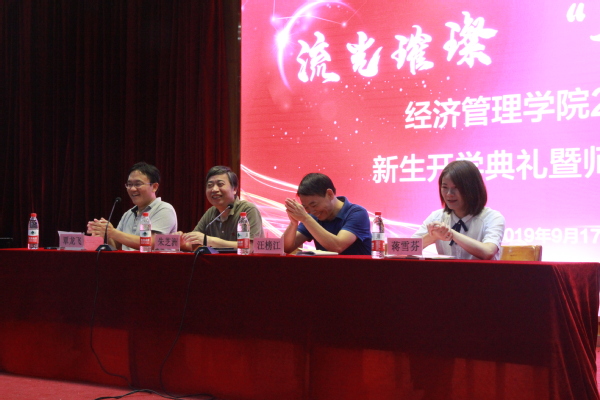 典礼在雄浑壮阔的国歌中拉开序幕。副院长汪榜江就经济管理学院的师资构成、专业设置等整体情况做了简明生动的介绍,对2019级新生的到来表示热烈的欢迎和衷心的祝贺,希望同学们认真读书,漫漫书山路,进一寸有进一寸的欢喜;早作规划,不负韶华,用奋斗开启青春的新征程。