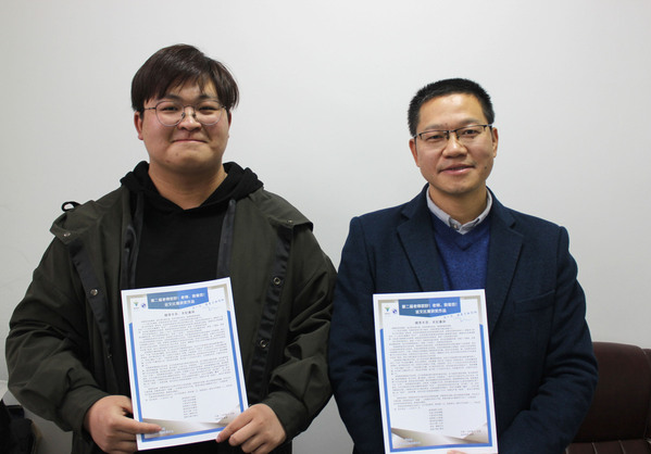 图:一等奖得主王俊和文中所感恩的姚水洪老师合影留念