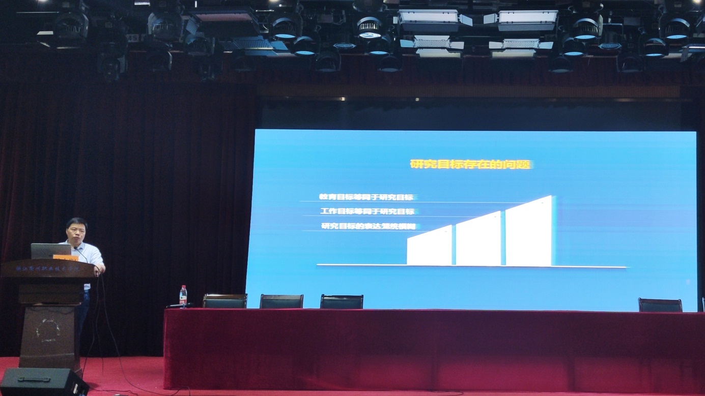 8月27日,江苏省教育科学研究院职业教育与终身教育研究所副所长陈向阳博士作“职业院校教师教学研究的案例剖析” 专题讲座。陈博士在教育教学研究领域有丰富的理论、实践和管理经验。他结合大量职业学校课题研究的生动案例,以教育变革之难、教学领域的不确定性和不同教学策略对学生学习效果的影响为切入点,就“何以要做研究、如何恰当选题、如何精当设计”等进行了深入浅出的剖析和研究方法指导,举一反三、案例详实,且高屋建瓴地提出了解决困境的方法和途径,既有针对性、又有操作性,为参训教师们带来一场精彩的视听盛宴。