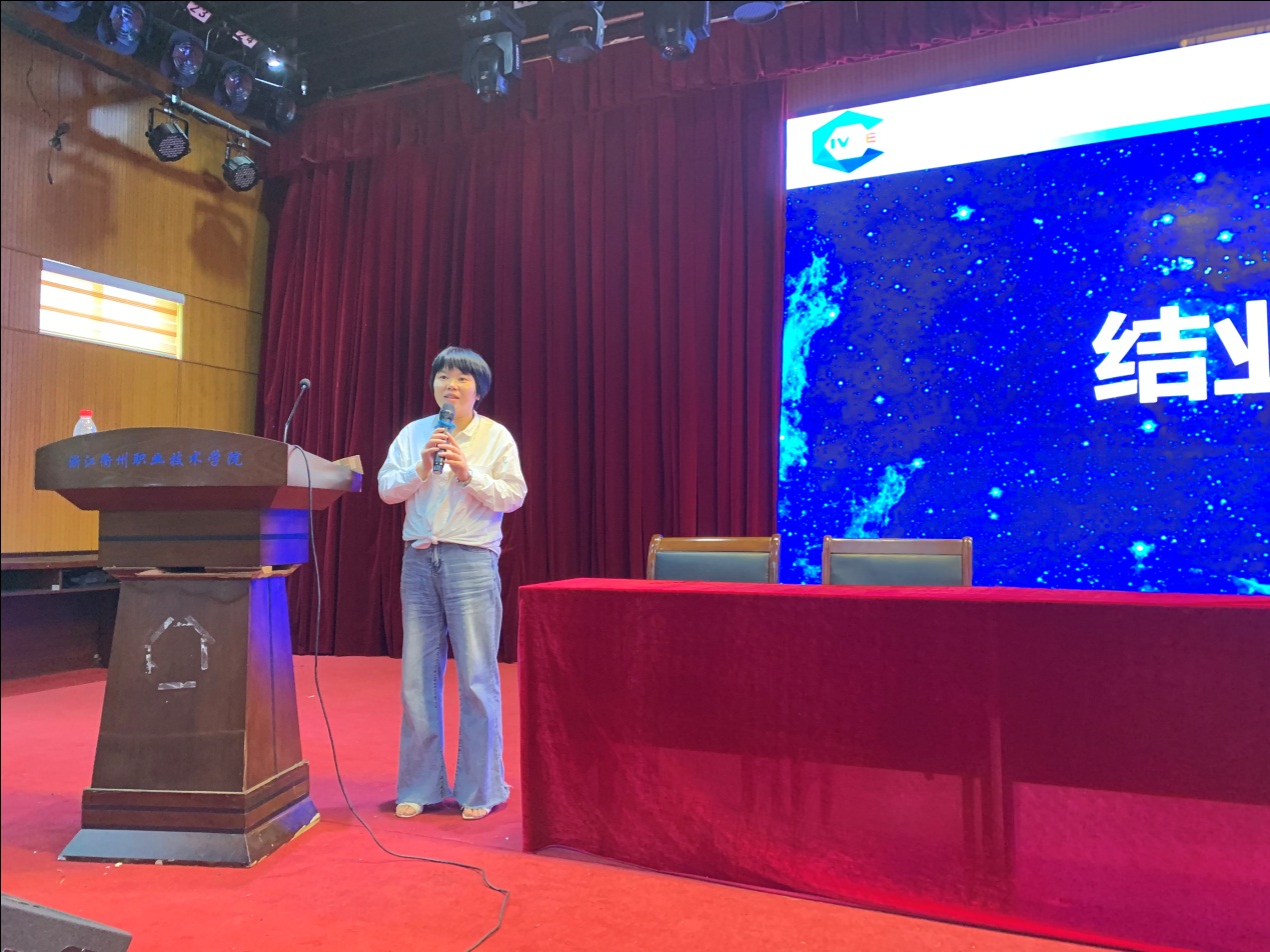随后,衢州市教育局职成教处郑晓珍处长作总结发言,她衷心表达了对承办方教育部职教所和衢州职业技术学院的感谢,充分肯定了12所中高职院校教师代表的优秀汇报,期待未来衢州市中高职师资协同研训工作的持续进展。最后,由教育部职教所涂三广博士、衢州市教育局职成教处郑晓珍处长和我校教务处王建处长为学员颁发结业证书。