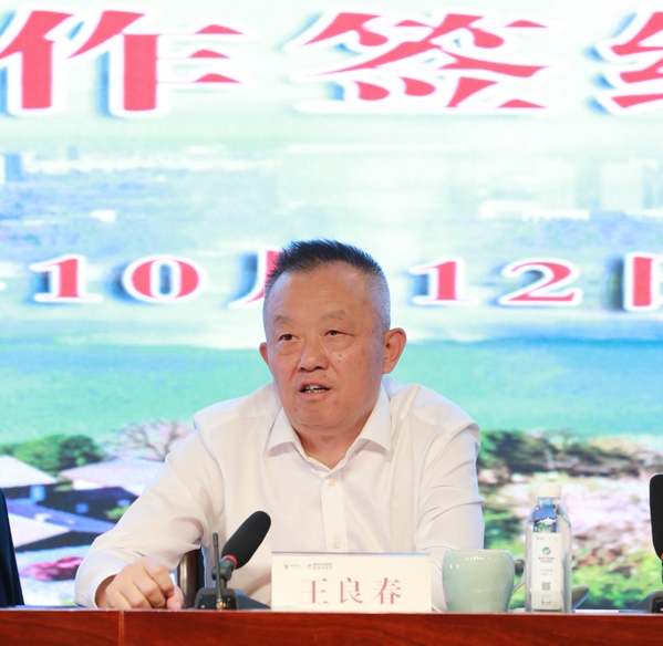 市政府副市长王良春讲话。他指出,近年来市政府以更加开放包容的姿态,推动衢州快速发展,并在这条道路上走得越来越远,越来越高。他要求双方要抱定初心,服务人民;院校携手,占领高地;打响品牌,做大产业。