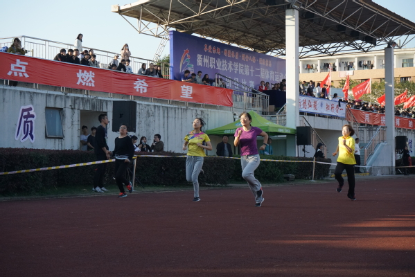 磨练的是非凡的毅力,较量的是超强的体力,拼搏的是出类拔萃的耐力,把长长的跑到跑成一段漫漫的长途,这是你们运动员的征途。听,呼啸的风,在为你们喝彩!听,观众席上如浪的欢呼,在为你们加油!这过程中或许有人欢呼呐喊;或许有人懊恼自责。但在今天,无论是场上的运动健儿还是场下统筹安排的后勤人员,都无一不体现出“永不放弃、永不气馁、永不低头”的体育精神,更展现了衢职学生的精气神!