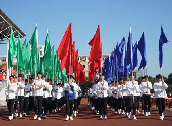 伴随着激昂的《运动员进行曲》,国旗队、校旗队、会徽队、彩旗队、裁判员队迈着整齐的步伐,气宇轩昂地踏入运动场。各二级学院运动员代表队方阵依次向我们走来,同学们步伐坚定,英姿飒爽,整齐的队伍,响亮的口号,展现了我校运动员朝气蓬勃的精神面貌,彰显了衢职学子奋发向上的青春气息。
