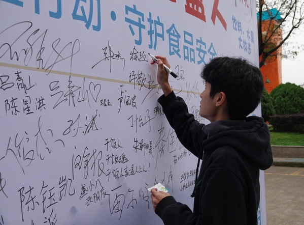 光盘签名,承诺有我。11月23日中午,食堂门口举办了“我们都是光盘人”签名活动,全校师生积极响应,踊跃在宣传墙写下自己对光盘的承诺,并签下名字,郑重承诺“从自身做起,切实增强责任感和紧迫感,以实际行动表达对厉行勤俭节约、反对铺张浪费的响应与支持,做节粮爱粮的实践者、监督者。”