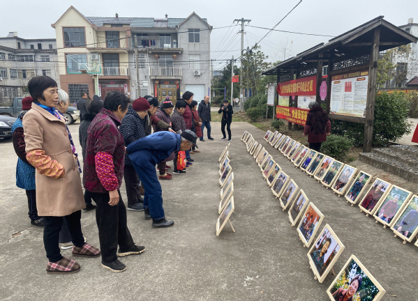 “村广场上相片摆起来了,我看到有你的哩!”双溪村68岁的村民张大娘吆喝着。村文化广场上一幅幅村民自己的肖像作品正在展出,围拢过来的村民们看着照片喜上眉梢,不时还和身旁的老人交流,看看照片里谁笑的最好。12月8日,衢州职业技术学院艺术设计学院“艺行者”教师志愿服务队再次来到江山市四都镇双溪村,将前次已经拍摄好、完成打印、装裱的相片,用相框、支架放置在村文化广场上,一场简易却不简单的乡村摄影展悄然登场。