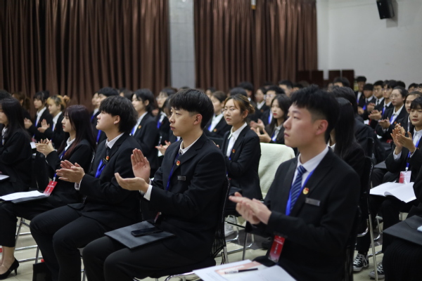 校团委副书记徐天带领与会师生学习《关于学联学生会工作人员改进作风服务同学的若干规定》,倡导全体学生会工作人员胸怀崇高理想、恪守学生本分、牢记服务宗旨,守纪律、讲原则、作表率,塑造清新阳光的组织形象。