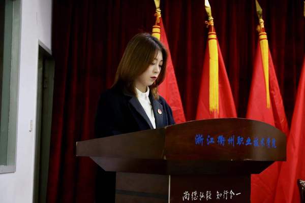 倪慧进致辞。他表示,衢州职业技术学院学生会在学校党委的正确领导下,在校团委的悉心指导下,紧紧围绕学校中心工作和根本任务,特色鲜明、工作扎实、锐意进取,在组织建设、文化宣传、社会实践、创新创业等各方面取得了可喜的成绩。他代表团市委和市学联对衢职青年提出三点寄语:一是坚持政治引领,把牢思想之舵;二是围绕党政中心,助力地方发展;三是落实改革要求,强化自身建设。
