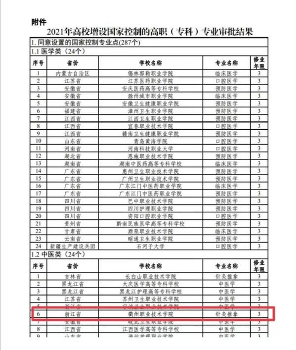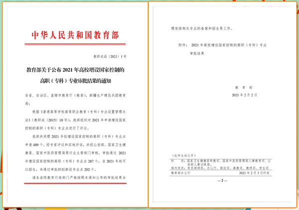 近日,教育部公布2021年高校增设国家控制的高职(专科)专业审批结果,其中,我校申报的针灸推拿专业通过审批。