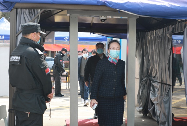 一行人从返校师生健康管理、防控物资准备、联防联控机制建立等方面,对师生入校通道、隔离点、医学院实训楼、艺术设计学院实训楼、图书馆一楼考证中心、学生公寓等关键防控点位开展了重点调研和指导。