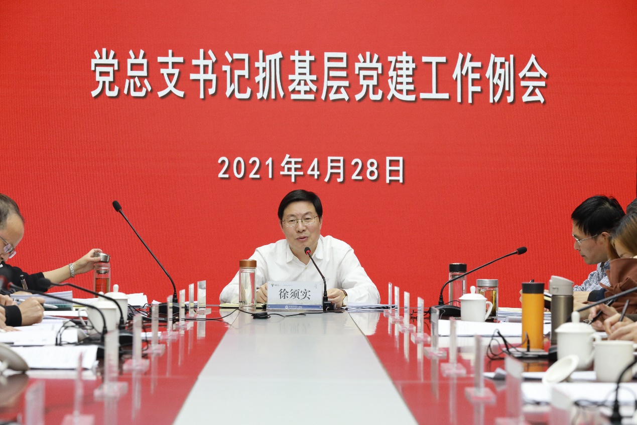 徐须实认真听取了各基层党组织的汇报发言并进行总结讲话。他首先对汇报内容进行了点评,对各党总支、党支部书记抓基层党组织建设工作进行肯定。徐须实强调,加强党的基层组织建设是我们党百年奋斗历程探索实践得出的克敌致胜的重要法宝。他回顾了百年党的发展历史,结合支部建设,给大家上了一党生动的党的基层组织发展史、建设史的微党课。