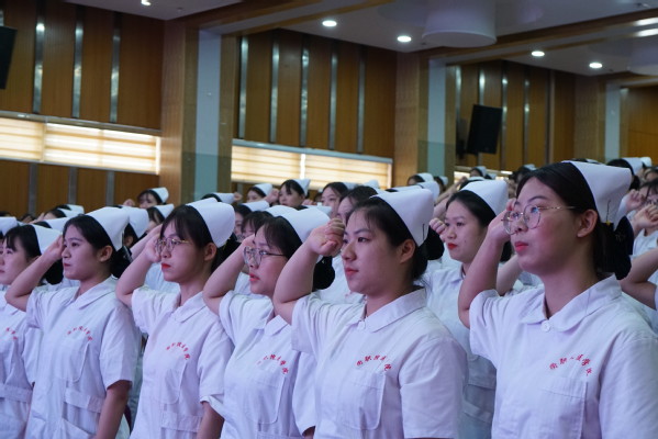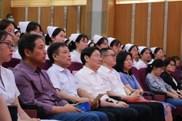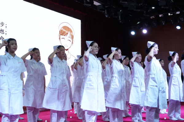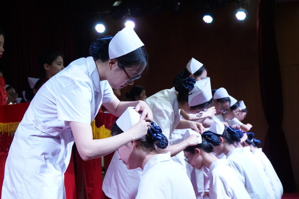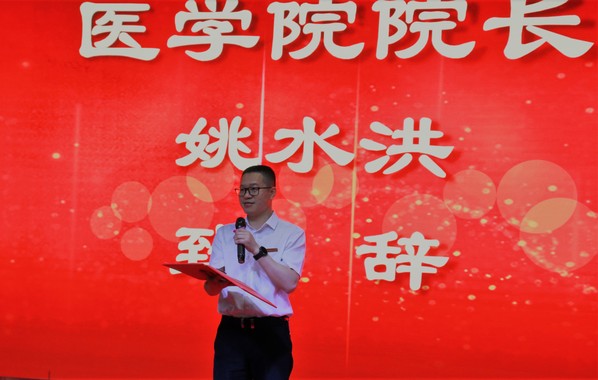 医学院院长姚水洪在学生热烈的掌声中上台致辞。他向辛勤工作在临床一线、为人民健康无私奉献的全体护理工作者,向辛勤耕耘在教学一线的护理老师,向未来的白衣天使们致以节日的问候并表达崇高的敬意。他指出,一袭白衣代表纯洁的心灵,一顶白帽是守护生命的重任!学生应铭记三点:一是发扬“三牛”精神,做新时代奋斗者。二是坚持“匠心”精神,做新时代奉献者。三是坚守“五心”执念,做新时代追梦者。