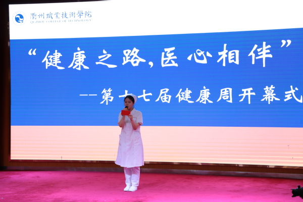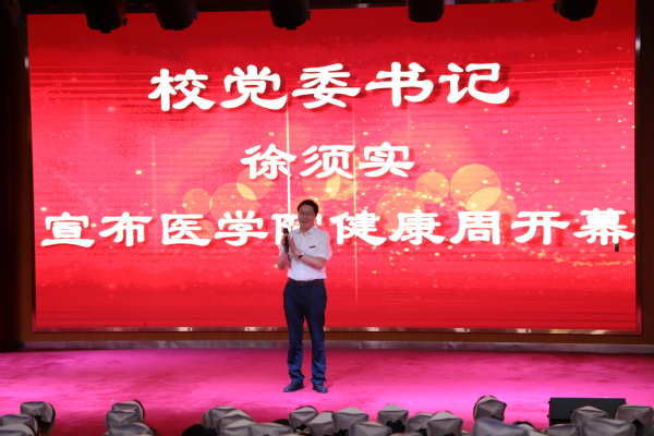 最后,在热烈的掌声中,校党委书记徐须实上台宣布“衢州职业技术学院医学院第十七届健康周正式开幕”。