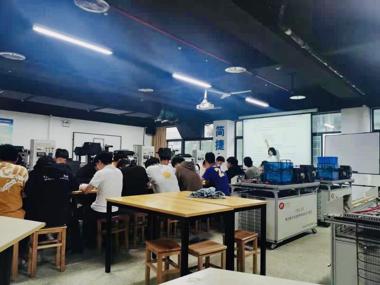 授课内容围绕“列管式换热器换热性能测试分析”展开。在教学过程中,李老师首先强调了实训操作的安全要求,并布置了具体的实训任务。同学们以小组协作的方式在换热器综合实训台上开展实验。实验过程中,王东升走近开展实训的学生,向他们询问实验的操作要求,了解学生需要测量平均温差和总传热系数等数据,完成实验报告上的传热性能曲线及数据分析。