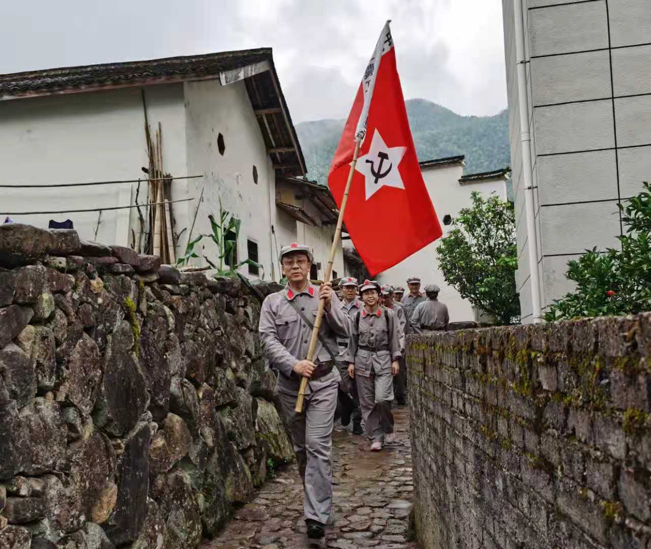 大家穿上红军服,整队,上山。走着崎岖的山路,体验艰辛,追忆岁月,既是一次考验,更是一场洗礼。