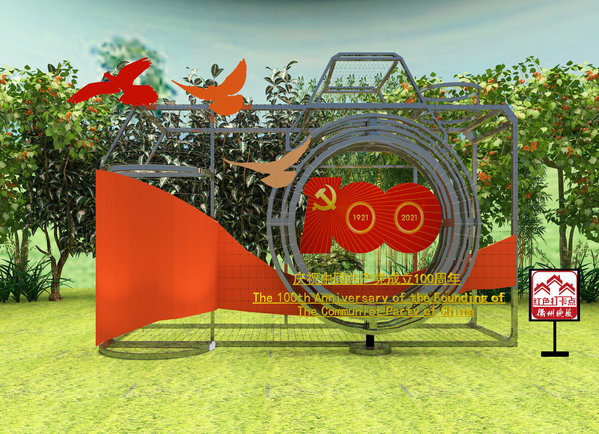 此次学生设计作品表现形式多样,主要从以下三个方面呈现。一是将专业学科与红色打卡点设计结合,以学科专业的代表性视觉元素为基础,结合百年党建文化基因,通过艺术处理形成视觉设计方案。二是将校园文化建设与红色打卡点设计结合,在现有校园景观规划与设施的基础上,发挥红色主旋律宣传意义,形成党建红色长廊、红色景观雕塑。三是将衢州区域红色传统文化与红色打卡地设计结合,挖掘与整理衢州地域红色历史素材,重构设计元素,体现时代精神,突出地域特征。