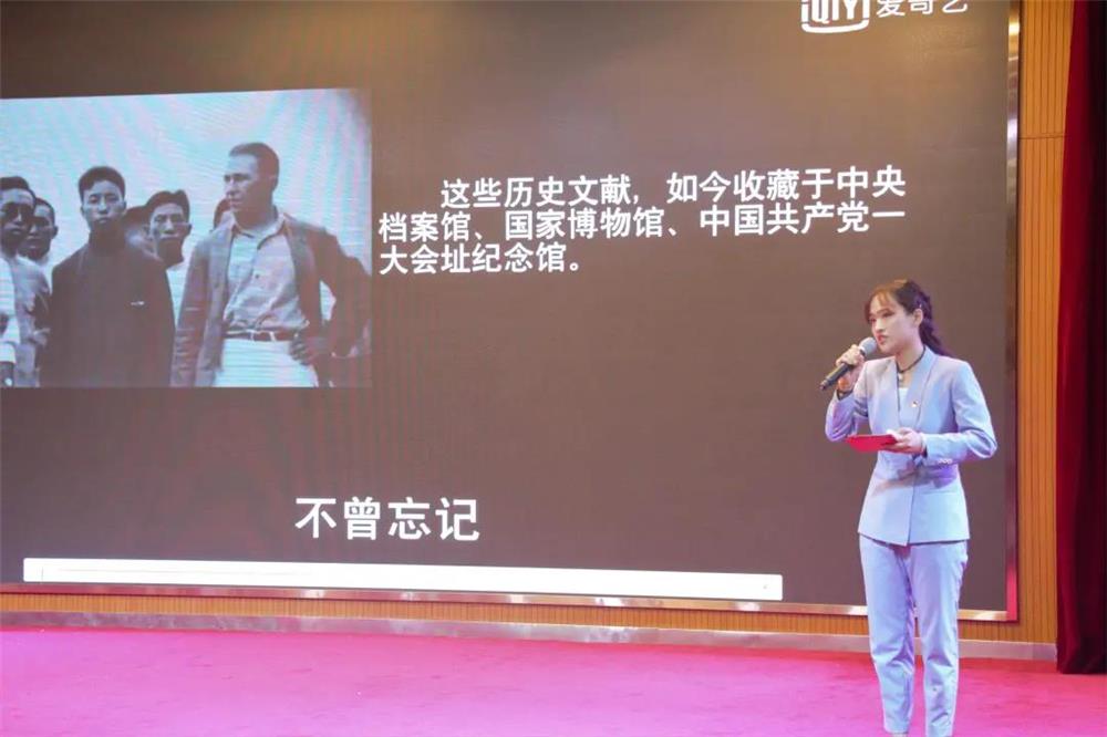 信息工程学院学生刘亚歌带来宣讲《九仟采风话初心 坚定信仰永向党》,讲述了九仟采风团的“90后”、“00后”青年大学生们一步一脚印,一目一坚定,努力追寻老党员们的身影,擦亮蒙尘的红色记忆,让共产党人的初心,在九仟采风中,永葆青春,永远滚烫。