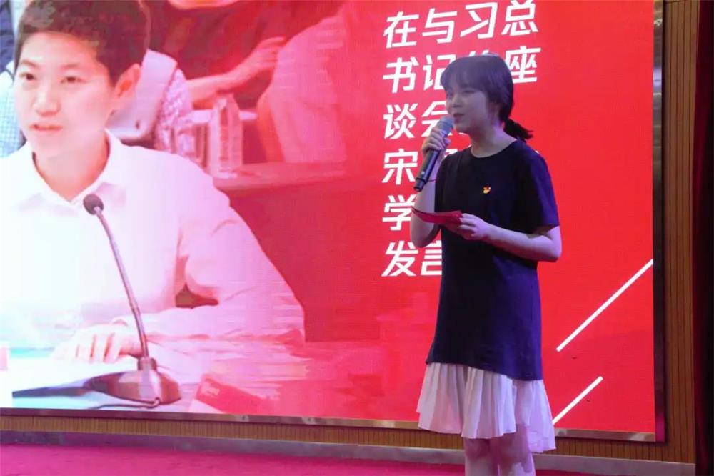 经济管理学院学生吴佳芯带来宣讲《做一名爱国励志、求真力行的新时代青年》。号召新时代青年,把爱国融入灵魂,把责任扛在肩头,把求真作为导向,把力行镌刻脑海,为实现中华民族伟大复兴贡献智慧和力量!