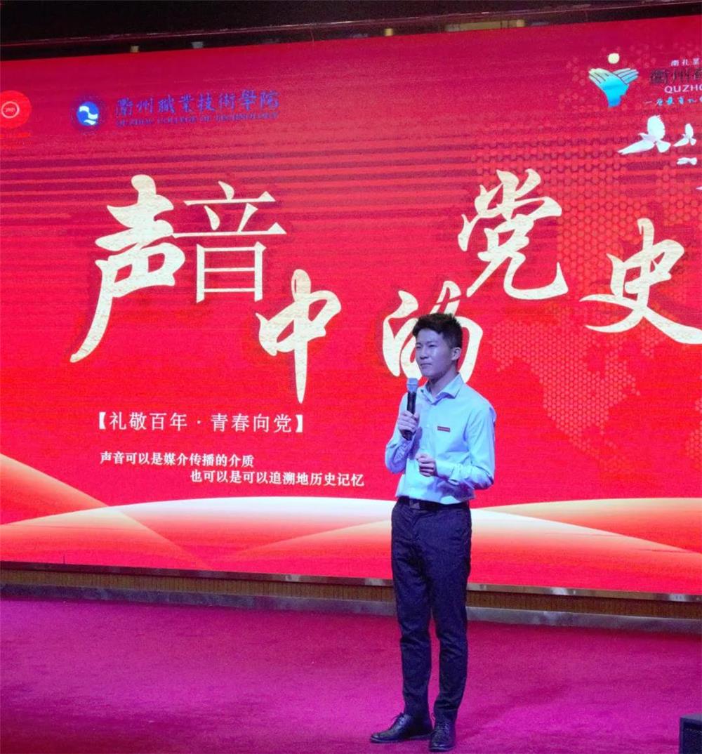 艺术设计学院教师张皓鸣带来宣讲《声音中的党史》,宣讲围绕从延安新华广播让党和人民的声音第一次通过无线电波传递出来,到东方红一号卫星的发射让中国的声音走出国门、走向世界,再到新时代的中国声音,展现了中国正在以一种强大的凝聚力发挥纽带作用,以及大国的责任与担当。