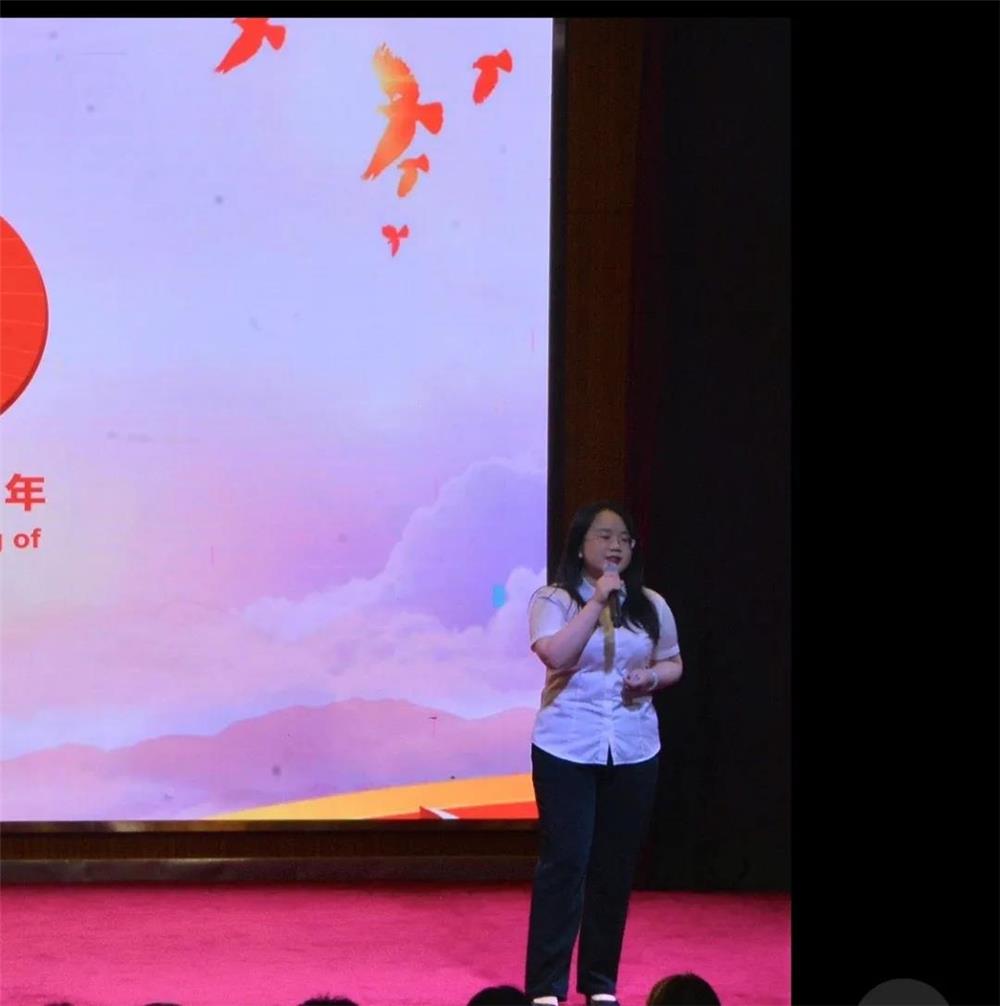 机电工程学院教师朱郑乔若带来宣讲《青春有你 奉献有我》。一生择一事,一事终一生,宣讲讲述了张桂梅笑对人生风雨坎坷,始终坚守在祖国西南边陲的教师岗位上的感人故事;我校教师周明安历经癌症洗礼,从未改变过对教书育人的初心,号召青年教师用情怀抒写担当,用实际行动践行一名人民教师的责任与担当。