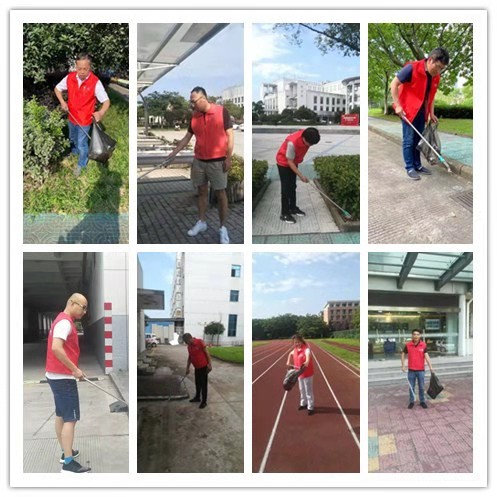 烈日炎炎,党员同志们热情不减,纷纷手持工具、垃圾袋,认真清理行政楼、教学楼、学生公寓、操场、食堂等公共区域的生活垃圾,捡拾绿化带内的塑料袋、烟头、瓶子等杂物,并彻底清理墙边、树林等卫生死角。党员同志在拾捡垃圾过程中还主动劝导乱扔烟头、车辆违停等不文明行为。