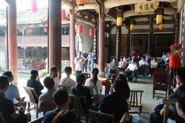 7月11日,校党委书记徐须实带领本次培训班成员赶赴江山市大陈村开展现场党建教学。在汪氏宗祠大礼堂内,学员们认真聆听全国优秀党务工作者汪衍君书记为大家带来的生动党课。