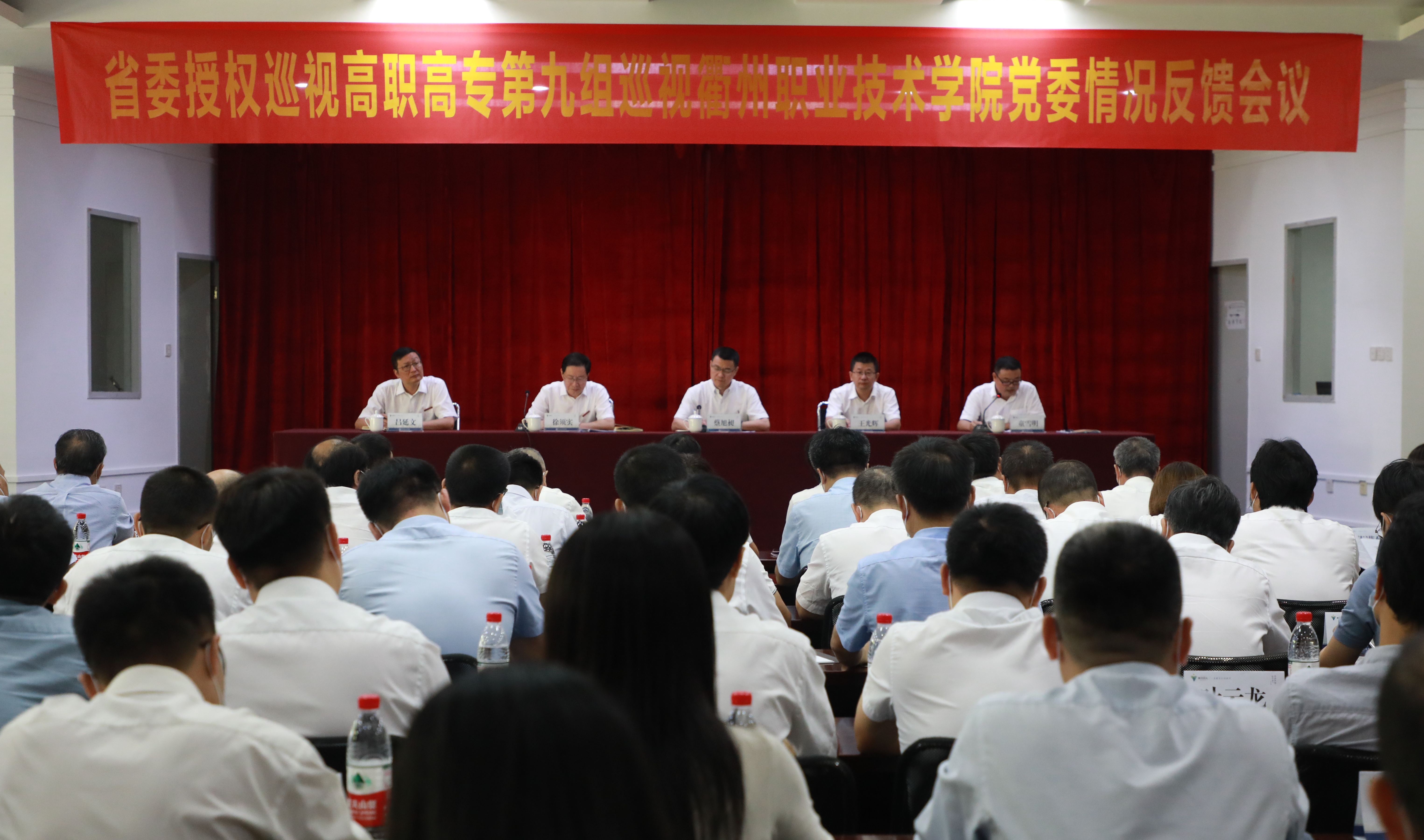 2021年8月31日,省委授权巡视高职高专第九组向衢州职业技术学院党委反馈巡视情况。市委常委、市纪委书记、市监委主任、市委巡察工作领导小组组长蔡旭昶出席向衢州职业技术学院党委书记徐须实的反馈会议和向衢州职业技术学院党委领导班子反馈会议,对巡视整改提出要求。蔡旭昶向徐须实传达了省委书记专题会议、市委书记专题会议精神,省委授权巡视高职高专第九组组长童雪明代表授权巡视组分别向徐须实和衢州职业技术学院党委领导班子反馈了巡视情况。徐须实主持领导班子反馈会议并作表态讲话。