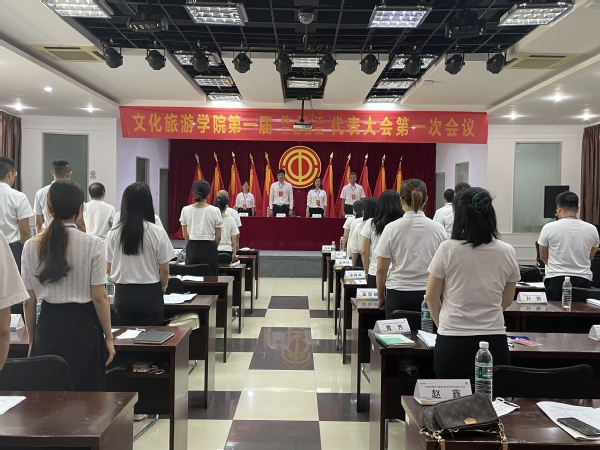 最后,文化旅游学院第一届教职工暨工会会员代表大会第一次会议在庄严的《国际歌》中顺利落下帷幕。