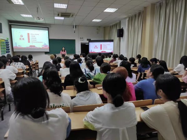 9月13日下午,我院应用英语党支部、休闲体育党支部分别在阶梯教室为2021级新同学开展了党史教育。