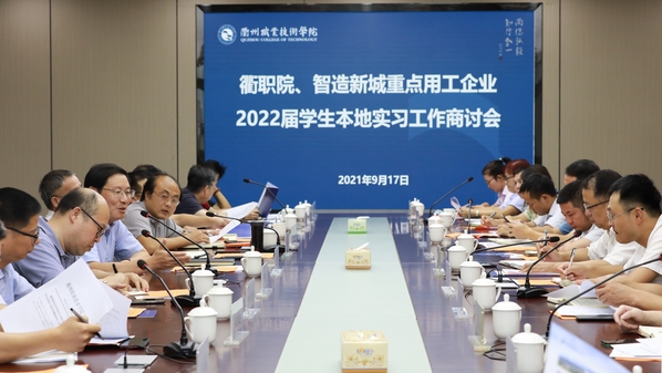 为进一步做好我校2022届学生本地实习工作,促进学生本地实习管理高质量发展,进一步提高我校毕业生“留衢率”,9月17日下午,衢职院、智造新城重点用工企业2022届学生本地实习工作商讨会在我校行政楼四楼会议室召开。