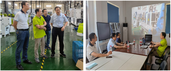 徐须实一行在铁犀公司技术负责人的陪同下参观了生产线制作车间,随后与企业负责人进行了座谈交流,校企双方就人才培养、实习就业、校企合作、产教融合等方面进行深入交流和探讨。