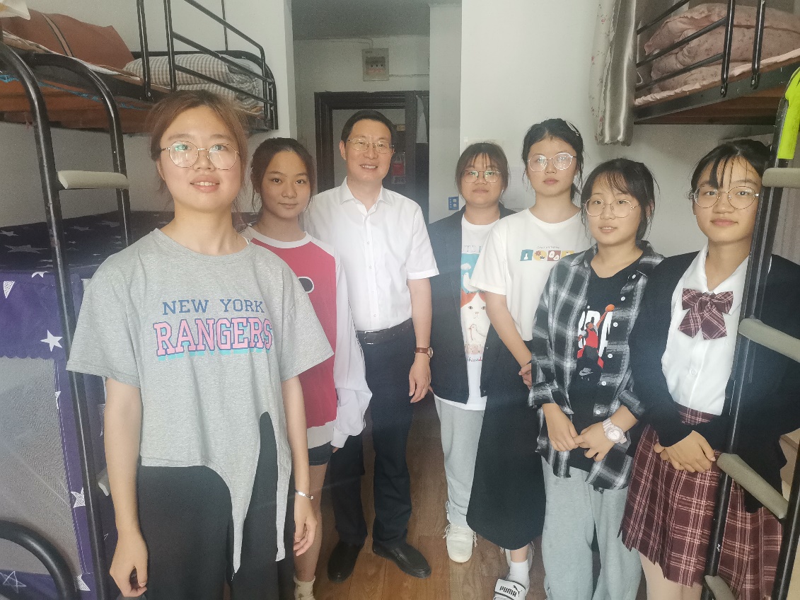 9月29日中午,校党委书记徐须实走访了“3221”联系寝室——医学院2021级针灸推拿专业1班3506寝室,医学院党总支书记余文富等陪同走访。