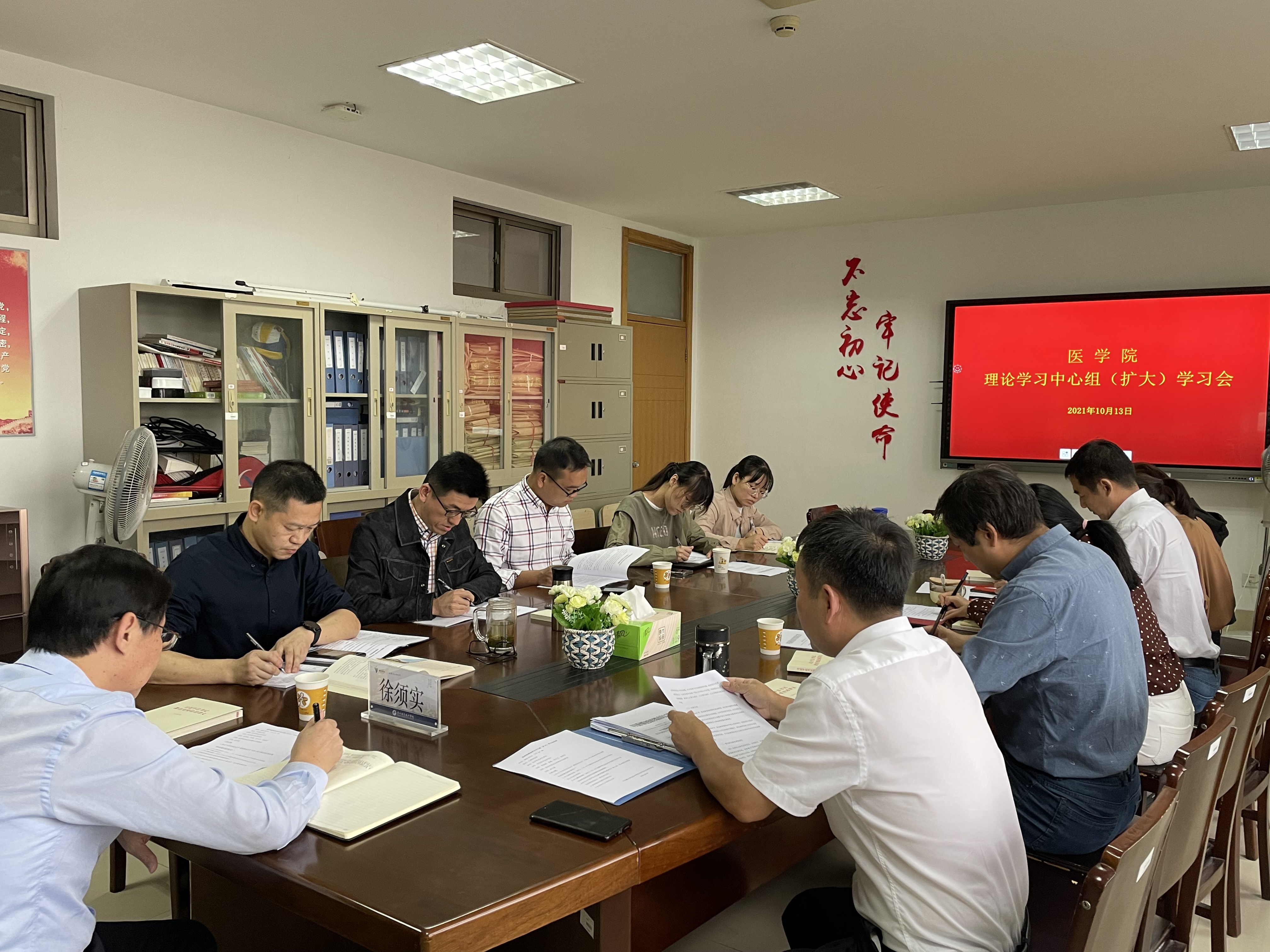 10月13日下午,医学院党总支召开理论学习中心组(扩大)学习会,中心组全体成员参会。会议邀请校党委书记徐须实巡听,各党支部委员、综合办公室主任、学工办主任及组织员旁听,会议由党总支书记余文富主持。