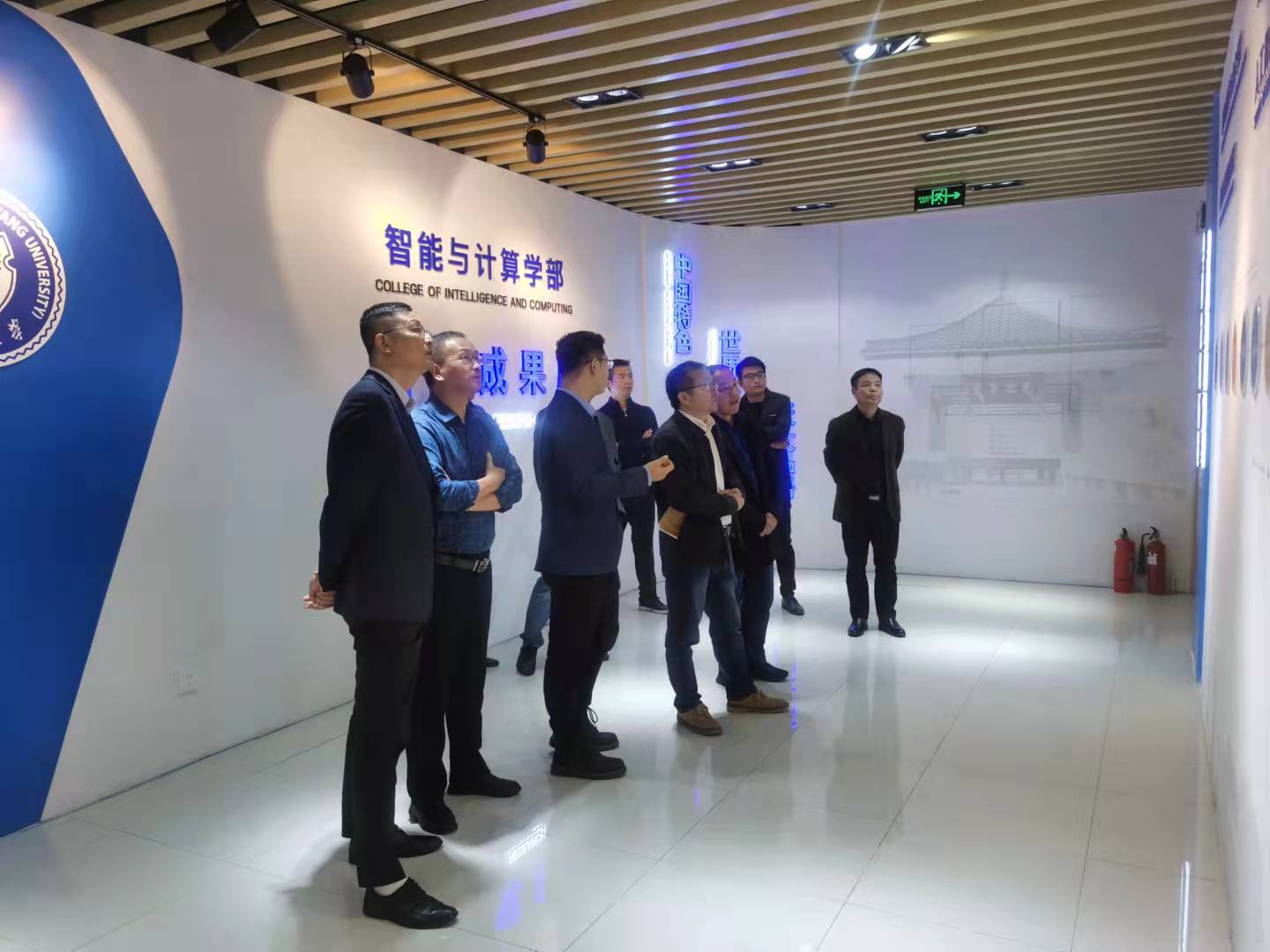 在天津大学,吕延文一行重点参观了智能与计算学部的科研成果展,对当前人工智能研究的前沿领域进行了详细了解。