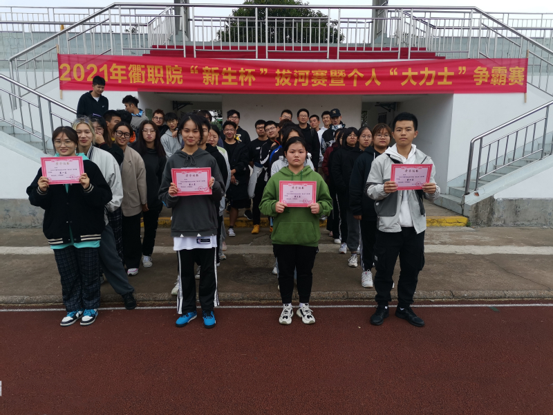 10月23日,2021年衢职院“新生杯”拔河赛暨个人“大力士”争霸赛完美落幕。本次比赛以弘扬“团结协作、力争上游”为主题,由公共体育部主办,校拔河队主教练黄志国老师负责,赛前对规则制定、场地安排及参赛人员体重测量等各方面进行了详细的安排以确保此次赛事顺利进行。