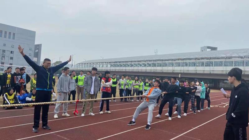 10月23日上午9:00随着裁判员的一声哨响,衢州职业技术学院第十三届体育运动会2021年衢职院“新生杯”拔河赛率先在田径场拉开了序幕。本次比赛为男女混合赛,六个二级学院分别选派大一新生、大二老生队伍参赛,共12支队伍、近120名学生参与赛事。