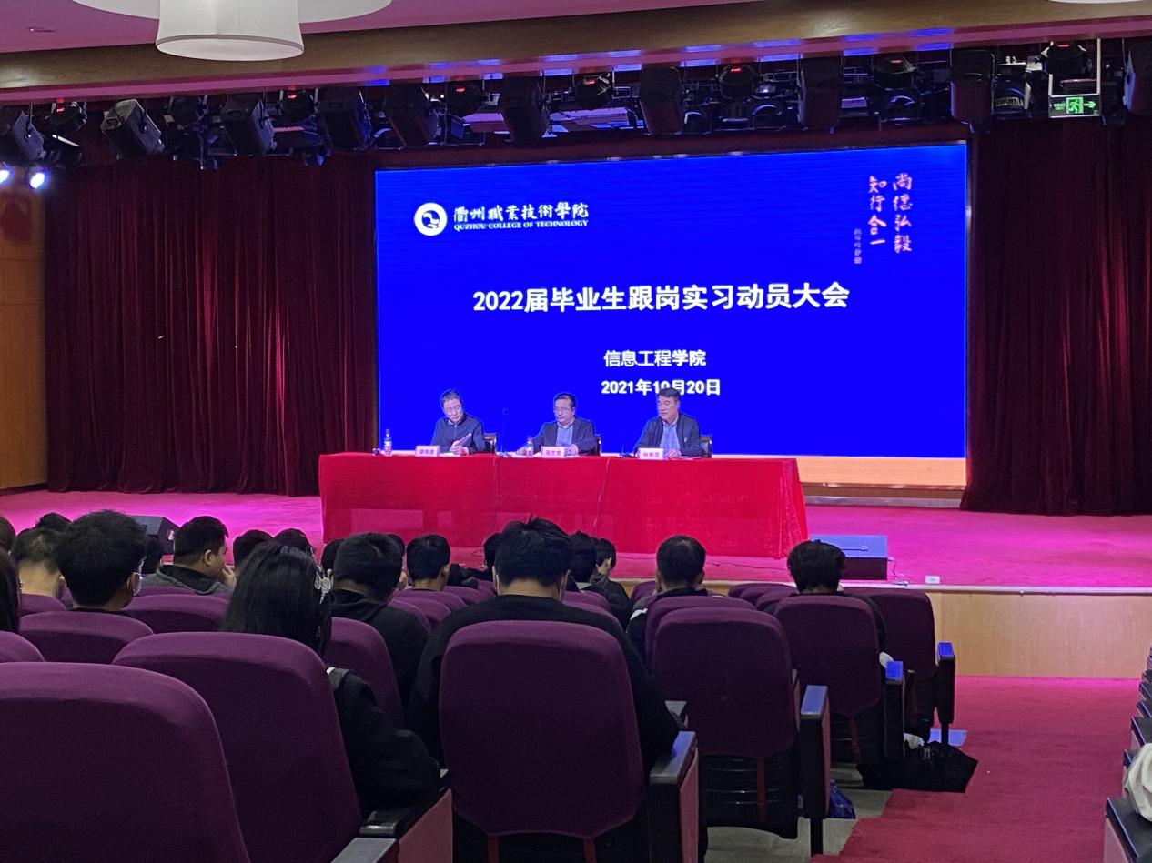 10月20日,信息工程学院在图书馆一号报告厅举行了2022届毕业生跟岗实习动员大会。院长马文龙出席并发言,党总支书记林繁昌主持,班主任、辅导员代表及2022届全体学生参加会议。
