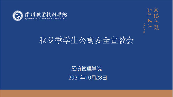 10月28日,经济管理学院在阶东3-4成功举办了2021年经济管理学院秋冬季学生公寓安全宣教会。本次培训旨在预防各种“寝室安全问题”,排除安全隐患,强化安全意识。提升寝室长队伍管理能力。