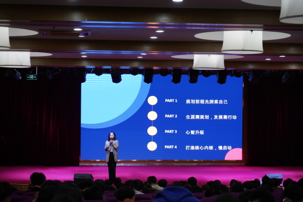 此次讲座旨在帮助21级新生在自我认知的基础上做好职业生涯规划,引导同学们主动加强生涯规划意识,明确个人发展目标,提升就业能力。讲座由党总支副书记蒋雪芬老师主持。