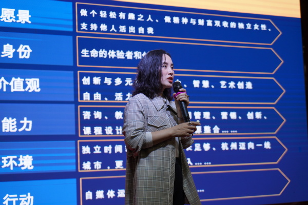 曾老师以个人的职场经历为切入点,讲述自己如何从一名会计专科毕业生到当下转型为一名专职职业生涯规划师的经历,概况了个人对职业生涯规划的意义为前半生依据外界要求塑造自己,后半生自己塑造想要的世界。从而引出了职业生涯发展,是成长之路、蜕变之路同时师更好做自己之路的意义。