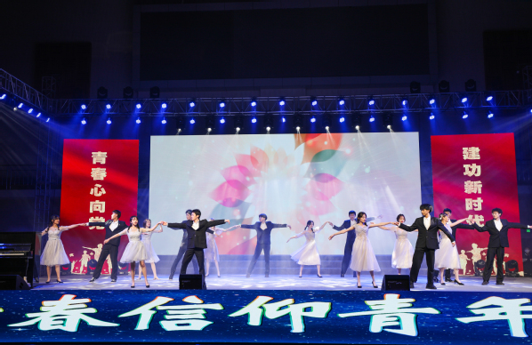 校“8090”新时代理论宣讲员、信息工程学院骆黎阳团队带来的理论宣讲《九仟采风薪火相传》讲述了“九仟”采风团开展了百人话百年专题采风的活动历程,带领青年学子在与老党员的对话中了解中国共产党的苦难与辉煌,传承党的荣光与精神。“我和我的祖国,一刻也不能分割;无论我走到哪里,都流出一首赞歌……”全场师生合唱《我和我的祖国》,再一次激荡起全场观众的爱国情怀,将晚会推向高潮,同时也昭示着十八而志的青春扬帆起航!