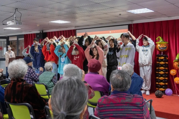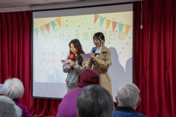 期间,同学们还悄悄准备了惊喜,为老人们举办了“十一月长者集体生日会”,以“00后”的方式为“银龄”庆生,送上最美好的祝愿。