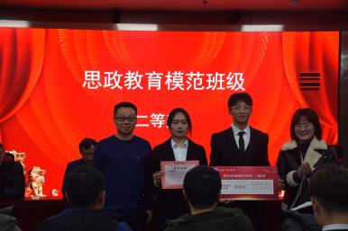 经过班会材料书面评审、现场演讲以及评委们的现场打分,2021年度机电工程学院“思政教育模范班级”最终结果揭晓:21汽销2班荣获一等奖,21汽销1班荣获二等奖,21机制1班荣获三等奖。机电工程学院党总支班子成员分别为获奖班级负责人和班主任颁发荣誉证书以及班级建设经费。