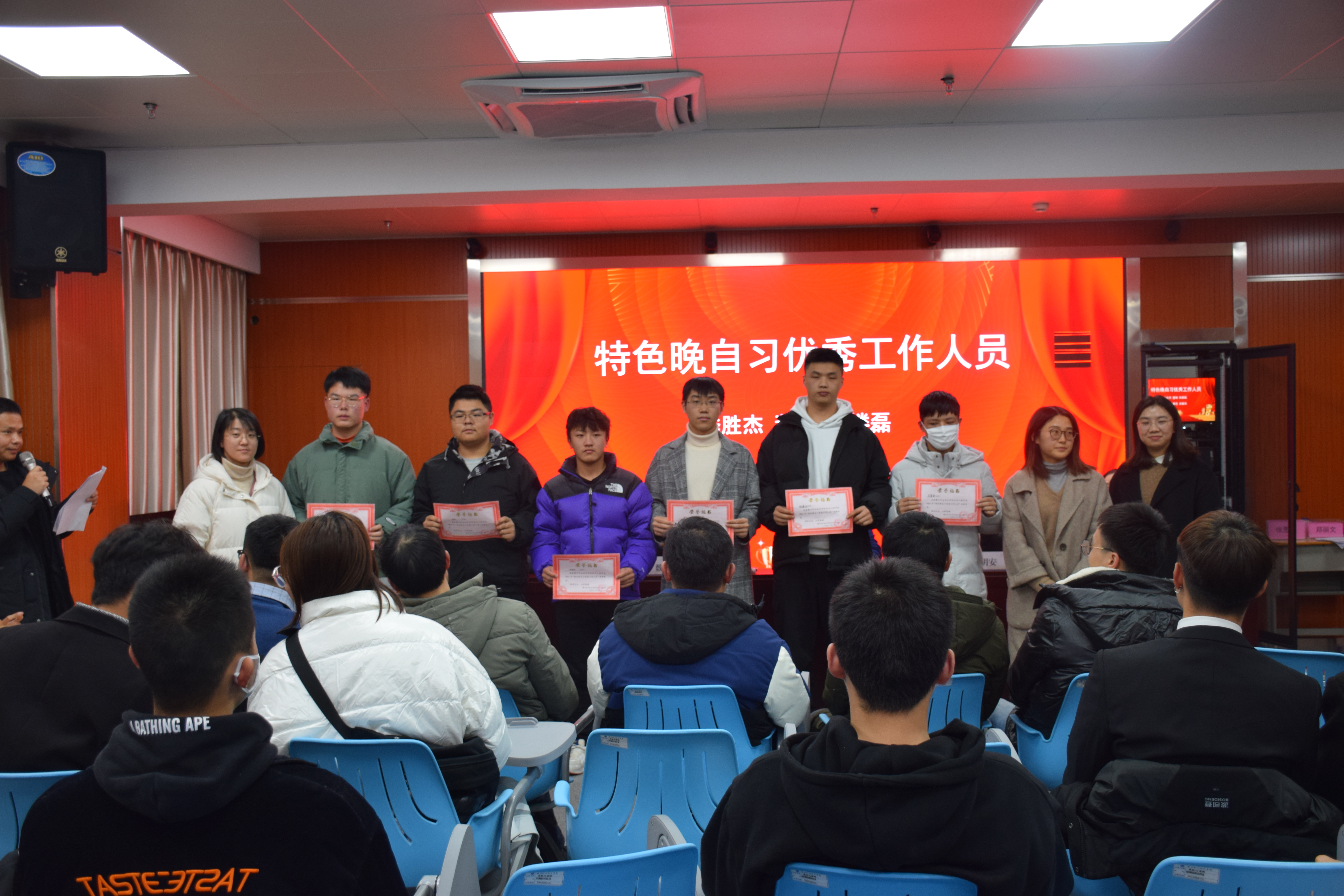 为充分发挥晚自习在立德树人工作中的阵地作用,促进学生德智体美劳全面发展,以点带面引导学生规范行为,使晚自习成为教育新阵地。1230日晚,机电工程学院于机电大楼303开展2021级特色晚自习总结表彰大会。 机电工程学院党总支班子成员出席表彰大会并为获奖班级颁奖。参加本次活动的还有2021级全体新生班主任、全体辅导员,本次活动由辅导员李治丹主持。