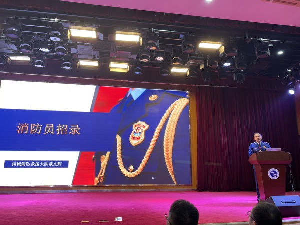 随后,衢州珠江文体发展有限公司负责人谭琪、柯城区消防救援大队站长戴文辉对单位概况、主要业态、岗位要求、薪资待遇、发展规划进行宣讲,两家优质单位对我院学生的加入均表达了殷切期望。
