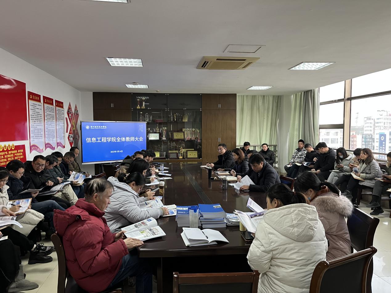 1月14日上午,信息工程学院在724会议室召开期末全体老师大会。学院党政领导班子成员出席会议,会议由院长马文龙主持。